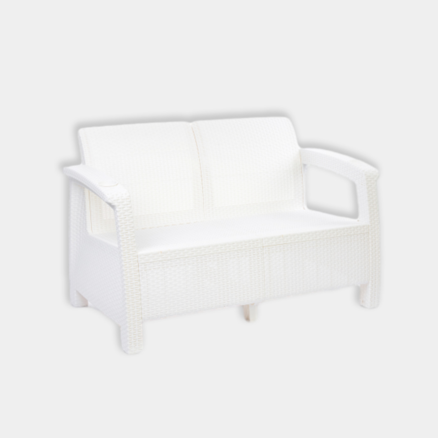 Диван произведен из высококачественного полипропилена, имитирующего плетение из ротанга. Диван имеет два посадочных места, допустимая нагрузка на одно посадочное место - 106 кг (212 кг). На подлокотниках дивана расположены отверстия для напитков. Диван может стать идеальным решением по оформлению зоны отдыха в доме, на садовом участке, в офисном помещении или в кафе. Благодаря цветовым решениям, диван подойдет под любой интерьер. Диван упаковывается в индивидуальную упаковку, инструкция по сборке прилагается. Зону отдыха также можно дополнить журнальным столиком и креслами серии «Ротанг-плюс».