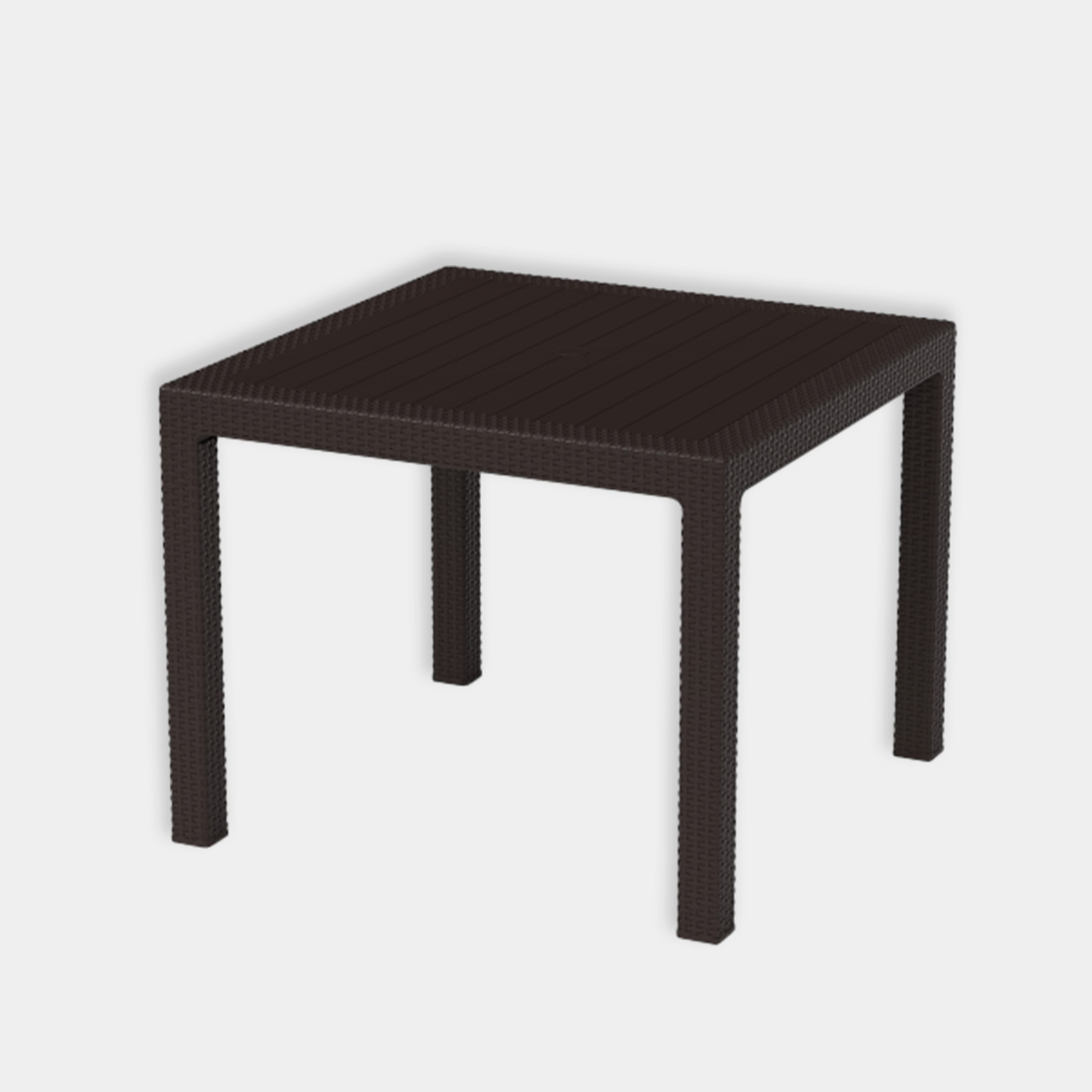 Пластиковый стол с имитацией плетения ротанг. Стол рассчитан на 4 персоны, продается в разборном виде, быстро и легко собирается. Выполнен из качественных полимеров, устойчив к солнечным лучам, влаге и перепадам температур. Идеально подойдёт для зоны отдыха вашего загородного дома или дачи.